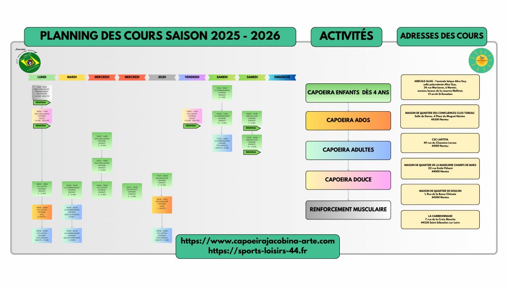 • Démonstration/roda pour la fête de la Musique le 21 Juin RDV à 17h30 au Miroir d’eau, devant le château, à Nantes ( En tenue blanche officielle )